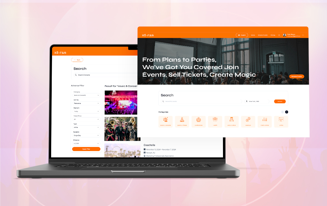 A subscription-based platform where organizers effortlessly list and manage events, while attendees discover and purchase tickets in one seamless flow.